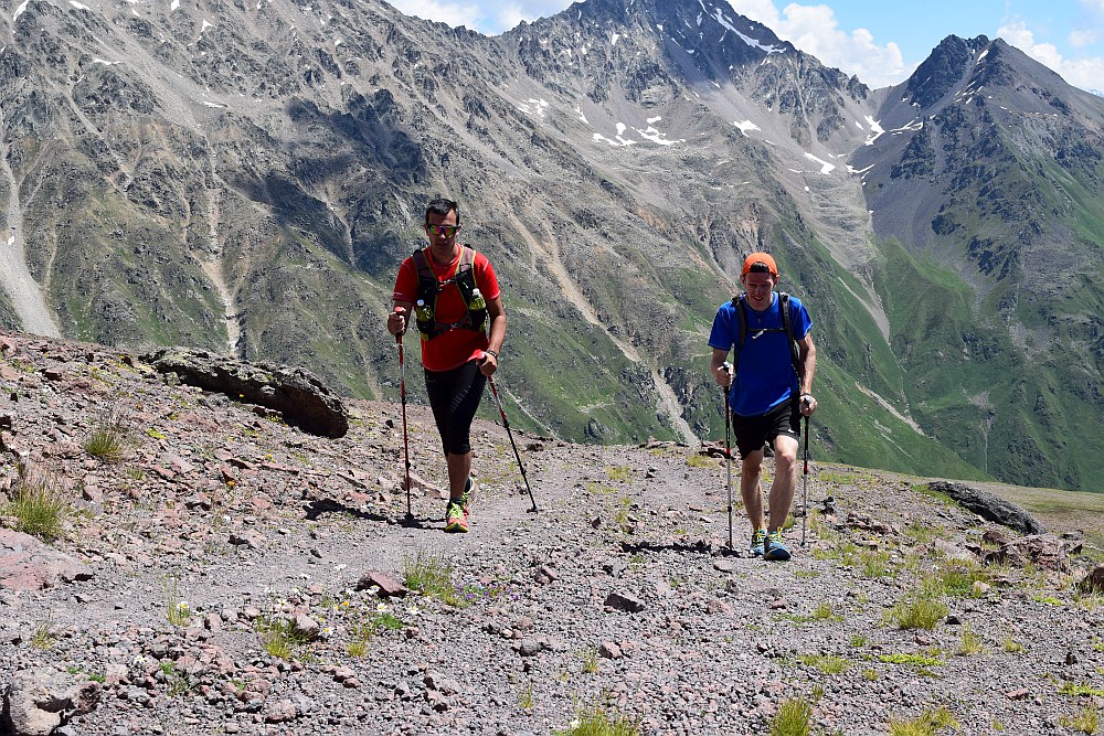 Вертикальный километр, помимо собственно соревновательной составляющей, выполняет еще две функции: базовая акклиматизация для участников восхождения и фильтр грубой очистки. Т.е. для того, чтобы стартовать в восхождении в любом классе (спорт - Азау, туристы - Бочки), надо пройти ВК в лимите быстрее 02:00:00. Это конечно очень щадящий лимит, но тем не менее вот просто так с дивана не каждый осилит. Например, товарищ мой Мишка, парень как грица плечистый и крепкий и при этом не злоупотребляющий, прошел за 1:59:36, т.е. прямо на грани лимита. Он правда на восхождение и не заявлялся и сам ВК рассматривал скорее как развлечение. Но вполне может служить примером умеренного начинающего физкультурника.