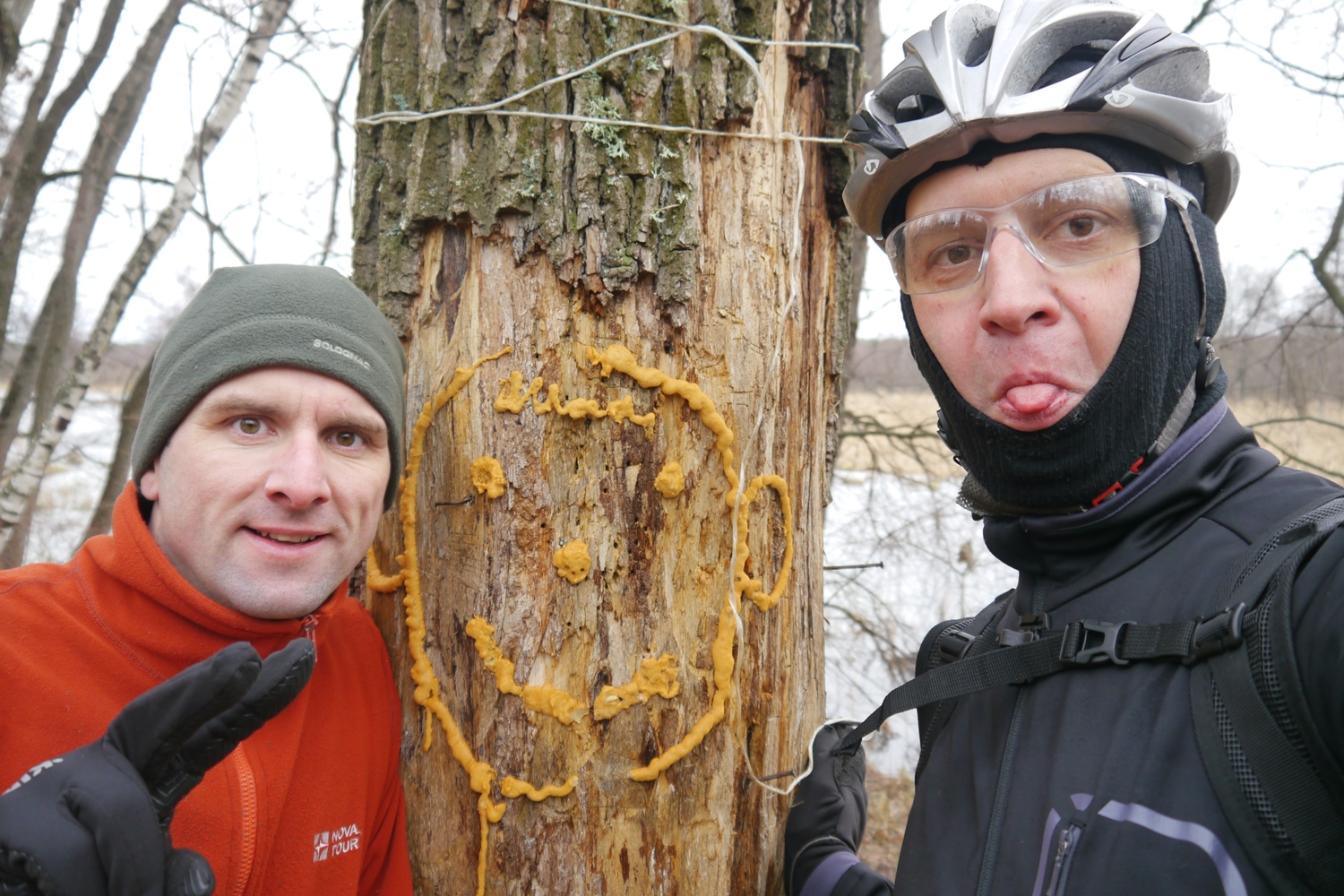Прогноз погоды обнадеживал, решили покататься по грунтам с jamo36, добравшись до пляжа Борового поехали вдоль реки выше по течению к детским лагерям благо дождь, который лил всю ночь не сильно подпортил грунты. Порадовала чистота у реки, весь мусор убрали любители природы. Оттуда двинули к Петровским озерам, красивые там места, далее к станции Синицыно и в Бор к дубу, следов велосипедистов там замечено не было. Далее нас ждал Черный плес, на подъезде к нему был найден большой гриб дождевик жалко, что уже не съедобный, jamo36 неделю назад был там, но гриба тогда не было. С плеса решили выбраться на дорогу другим путем по следам квадроцикла, до определенного момента идти можно было, пока не уткнулись в болото, пришлось разворачиваться обратно, но все же тропинка была найдена и мы вышли на дорогу. Ну и куда же без нынче модного железного моста у Веневитиново, отметились там и поехали домой.