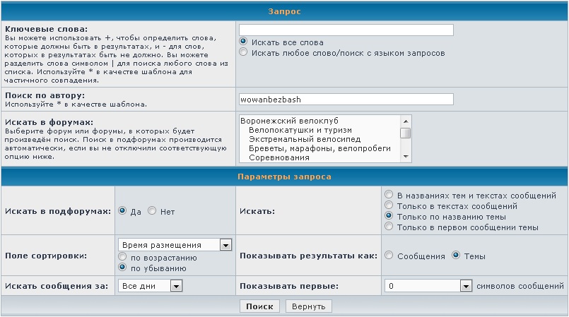 Там есть поля для поиска - ты можешь искать по сообщениям/по теме/ определенного автора - ???? - profit!