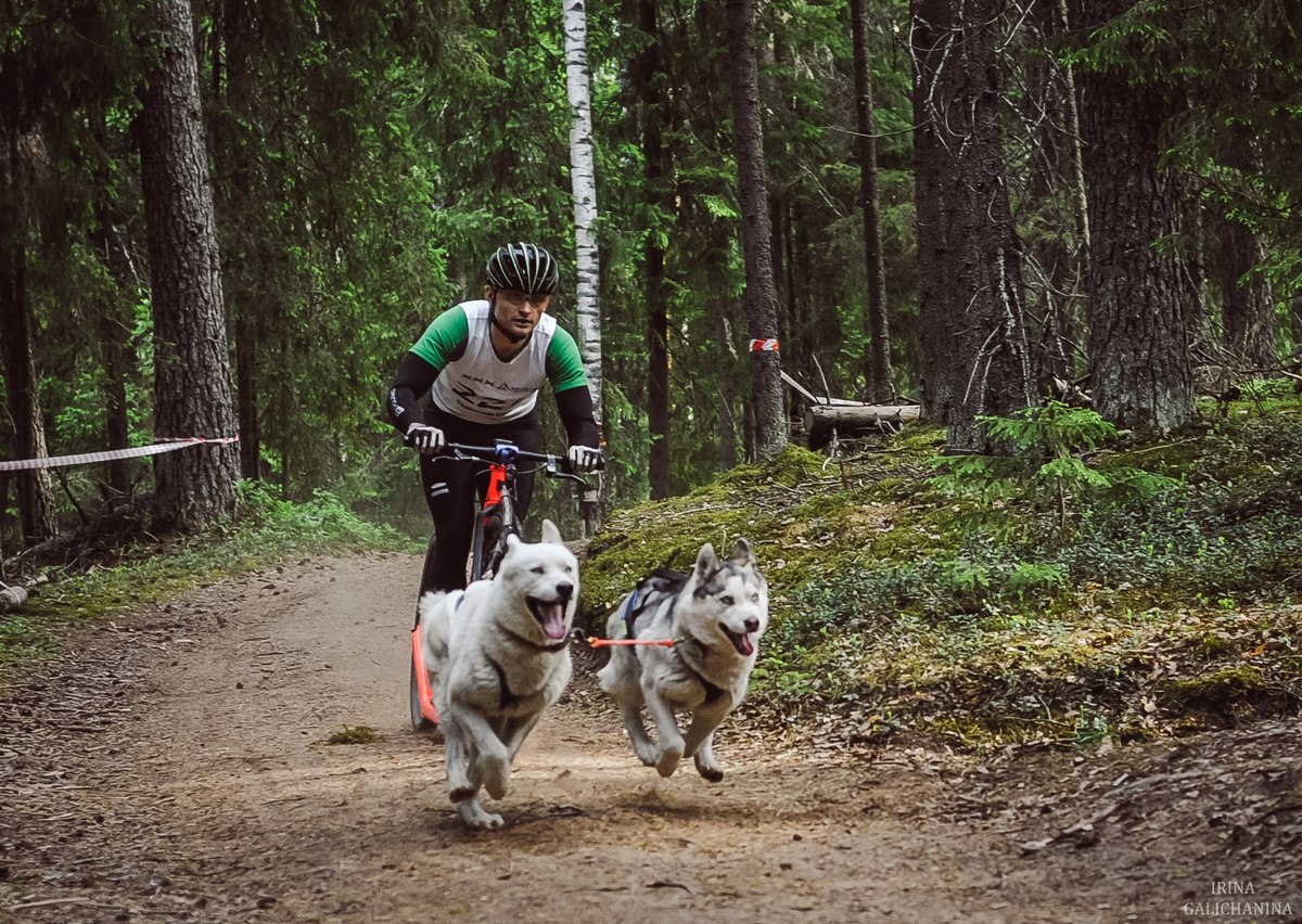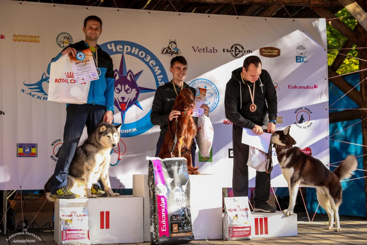 Стоит отметить, что форумец Lexx Mad занял первое место в дисциплине "Велосипед 1 собака мужчины", показав при этом лучшее время трассы среди всех участников соревнований во всех дисциплинах. Дистанцию в 4.17км, с длинным песчаным участком, вязким тягуном и несколькими непростыми скользкими поворотами он преодолел со средней скоростью в 28.43 км/ч. Далеко не каждый велосипедист сможет так проехать там без собаки :) :Bravo: