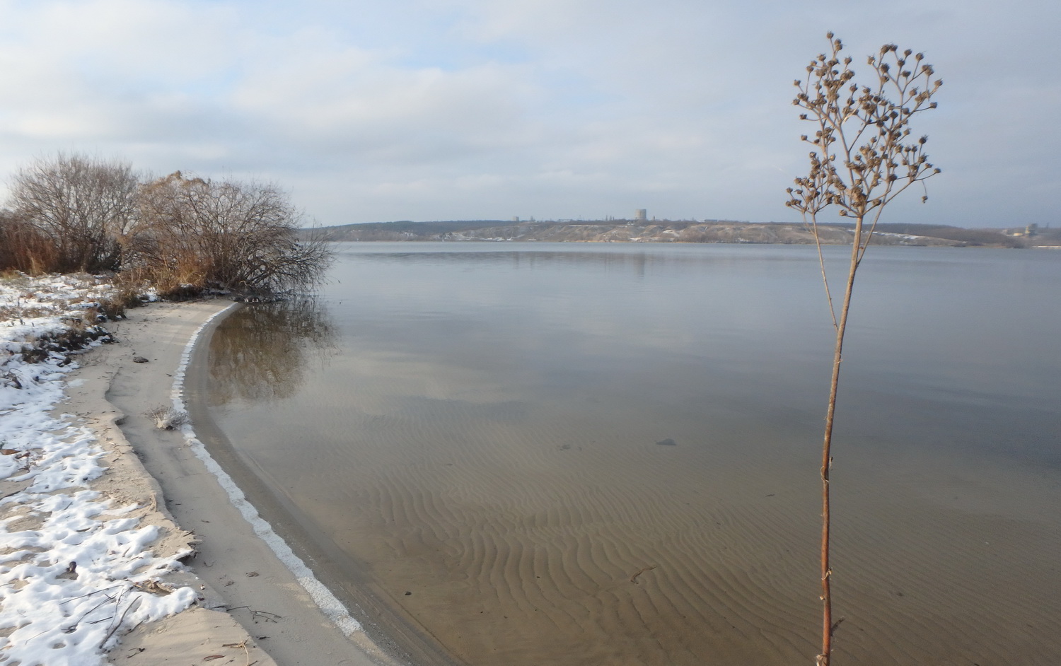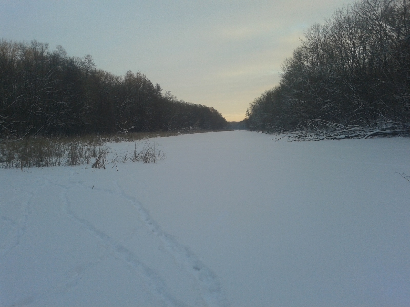 Спустившись, огорчился, что водохранка занесена ровным слоем - была мысля доехать по ней хотя бы до Рыбачьего, чтоб вернуться взад.