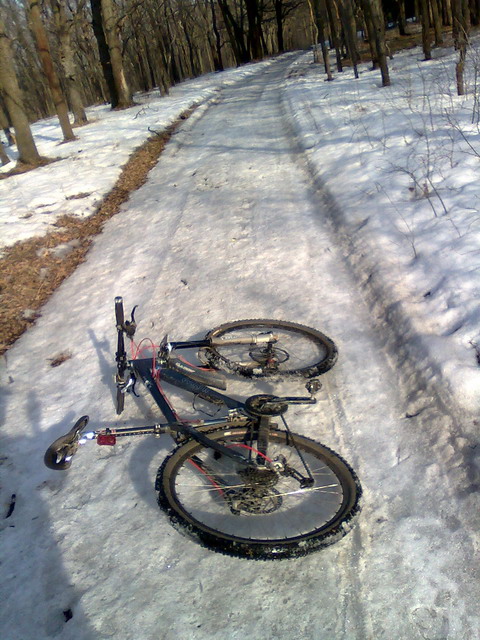 Поездка вышла отличной. У Малышева и правда говна, ибо чернозем, а в Песчаном Логу песок в поле ощущение как после небольшого дождя – вполне легко выбирать только сухую дорогу, а в лесу отличный не скользкий лед и очень тихо и тепло, не пожалел, что поехал. Вел и я чистые, цепь так и не захрустела песком.