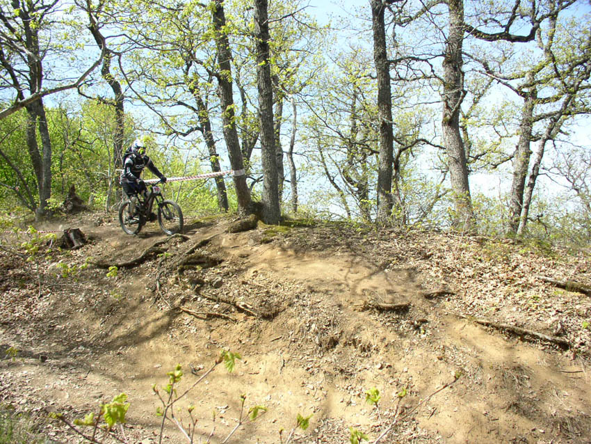 Ну и вот наконец старт -- куча народа (участников было около сотни), некоторое количество зрителей (как не странно, зрителей меньше чем участников), человек 10 с солидными фотоаппаратами. По регламенту сначала должны были идти девушки, потом юниоры, потом опытные райдеры, сначала те что без квалификации, а потом по рейтингу от последнего места к первому, т.е. тот кто выиграл в том году болжен был спускаться последним. Разрыв старта для девушек и юниоров 3 мин, для опытных 2 мин. Так, посмотрим на этих загадочных девушек которые участвуют в таком опасном виде спорта… Пройдя всю трассу снизу вверх, видя все эти трамплины, камни и прочее хочется им сказать: "Зачем, да бросьте, это же и правда может легко кончится переломом, сотрясением или чем то таким же нехорошим.. Оставьте это пацанам!" Но девушки стартуют достаточно неторопливо и возникает уверенность что скорее всего они доедут..