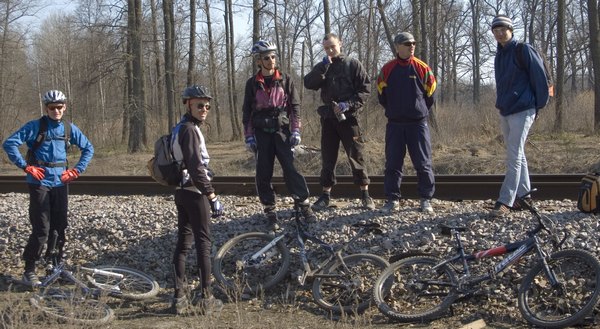 С группой Метеора мы встретились уже в Графском, и двинулись вдоль железки вместе, была попытка найти тропинку вдоль ж/д по лесу но не получилось
