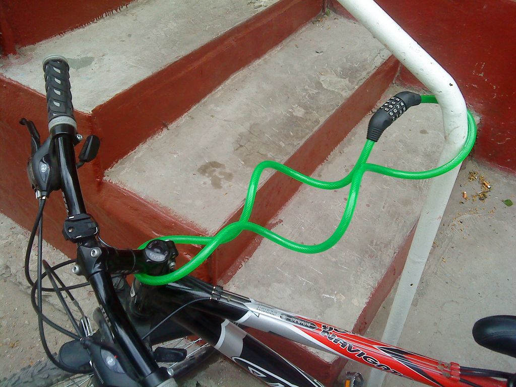 Сегодня забрал свой чудо-трос.... Красота: и отбиться можно, и отпугнет 99% желающих, и не такой он уж и тяжелый... Таким и мотоциклы привязывают, не то, что велосипеды.