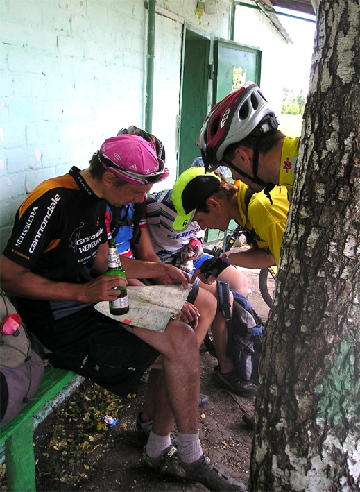 250 км проехал я по этому нелегкому маршруту. Все потому , что стартовал с Дальних Садов на Остро Гожской. Добраться оттуда до «Линии» на Остужева, где встречались все остальные, против ветра было уже маленькой победой над собой. Встретились 909, Dwoex, Nedjmdin, Radler, Zheny, судя по никам – иностранцы. И поехали смотреть таинственную Россию, не с обертки шоколадных конфет, а как она есть сама по себе в день российской молодежи. Путь к сердцу России лежал против ветра, на бабяковский виадук, где к нам присоединился Inokoff, удачно избавившийся от своих юных велосипедисток. Конечно же свернули на НеоУсмань и вдоль реки, лугом полезли на Рыкань. Ветер не стихал. У Волны свернули грунтами на Рождественскую Хаву, где и объявились вскоре. Судя по запаху, сердце России было где то выше. Около магазина взяли языка из местных. От готовности помочь он, было, отправился в Панино со мной пешком. Потом все таки на своем диалекте объяснил что ехать надо на Конезавод, через мост, через Хаву. До Конезавода шел аствальд в гору , против ветра. Выпала возможность показать свой шахтерский характер. За шахтерскую честь боролись Жени, Иноков и Радлер пока не закончился аствальд и не начались грунтовки вокруг Конезаводских прудов. Вскоре кончились и грунтовки и начались курганы и травы. Поехали на восток, ориентируясь по ветру в морду. Приехали в какой то Красный Верх, где держали совет. Дали 20 ти километровый аствальдовый крюк до Панино. Крюк оказался самым коротким путем, потому что везде громоздились пруды, которыми богат Панинский район. Столицей панинского района по праву является ПГТ Панино. На его околице Неджмдин засобирался в обратный путь, чтобы вечером ехать в Москву. Вместе с 909 они уехали. Позже выяснилось, что Недж ошибся днем и в Москву ему нужно было завтра. Тем не менее, нас осталось четверо. На улицах было необычно пустынно и немного не по себе. Чувствовалось, что сердце России где то рядом. Остановились у магазина пополнить запасы . В магазине, кроме двух пьяных продавщиц, нагло причисливших себя к молодежи, никого не было ,Пока я сторожил велы, мои друзья подготовили продавщиц к прибытию меня в магазин. С порога меня игриво обозвали онанистом, потом тут же взяли слова обратно, потом все же обозвали, Под конец одна из продавщиц вышла на открытый воздух и предложила за 10 рублей со всех пощупать у нее в кармане сердце России. Подумали, что Вованбезбаш уж точно бы не отказался, а сами вкрутили что есть силы из эпицентра душевности и простоты. Дальнейшие 30 км по коленчатости напоминали змеевик от самогонного аппарата. Это были аствальдовые куски между отделениями совхоза Михайловский, всякими Иванавками и Марьевками. Вращение педалей выбросило нас на грунтовку, проехав по которой километров пяток увидели мы под горой Битюг, тихий и широкий в этих местах. Спустились к реке и давай звонить друзьям – байдарочникам. Они стояли тремя километрами выше и единственную байдарку даже не собрали еще. Подъехать к ним по берегу по чащобе непролазной исключалось. Принялись мы неистово купаться и собираться в обратный путь, отмахиваясь от слепней с оводами. Залезли на гору, Ветер задул в спину и поехали. Тем же аствальдовым змеевиком в Панинский Эпицентр. Продавщицы слонялись вокруг магазина и показывали на карман, но мы полакомились мороженым на другой стороне улицы и двинули н