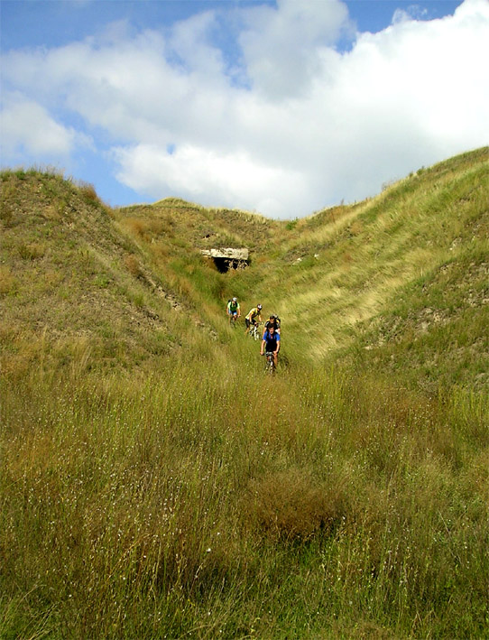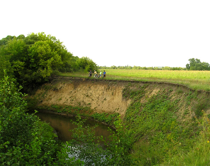 Очень понравилось кататься на велосипеде с Жени, Иноковым, Радлером и Вованбезбашем. Правда, трое последних точно безбашенные. Затеяли гоняться с джипом вдоль Дона по грунтам. Хреначили за 50 км\ч местами. Это по равнине с неровностями. Водила проникся, кажется. А ездили вдоль Ведуги, от стрельбища в Семилуках до впадения ее в Дон. Очень красивый короткий маршрут. На спуске к стрельбищу у меня тормознуха закипала. Техничный такой спуск по тропиночке. В районе Ендовища на обрыве выходы песчанника с пещерой. У Губарево тоже. Последние, перед впадением в Дон, километры Ведуга течет в каньоне, затмевая по красоте ВОНЮЧКУ ГОЛУБОЙ ДУНАЙ. От впадения Ведуги до семилукского автомоста ехали берегом Дона, где и победили джип. Вместо того, чтобы бухать и колоться надо ездить в эти красивые места или хотя бы на ВОНЮЧКУ ГОЛУБОЙ ДУНАЙ.