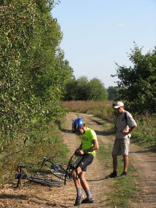 Обратно по этому же маршруту покатилось довольно задорно, потому как ветер дул уже в спину. Крутили бодренько так: 27-30-33 км/ч. Мне шлось комфортно, ДМ76, наверное, тоже, а вот каково было MiG`у на шоссере остается только догадываться. Пока крутили обратно, я всю дорогу надеялся, что сейчас…, или вот сейчас…, ну вот уже…, вот вот должны… вырулить из-за очередного поворота нам навстречу липчане. Но мы отожгли уже ¾ грунтовки, а чуда все еще не происходило.