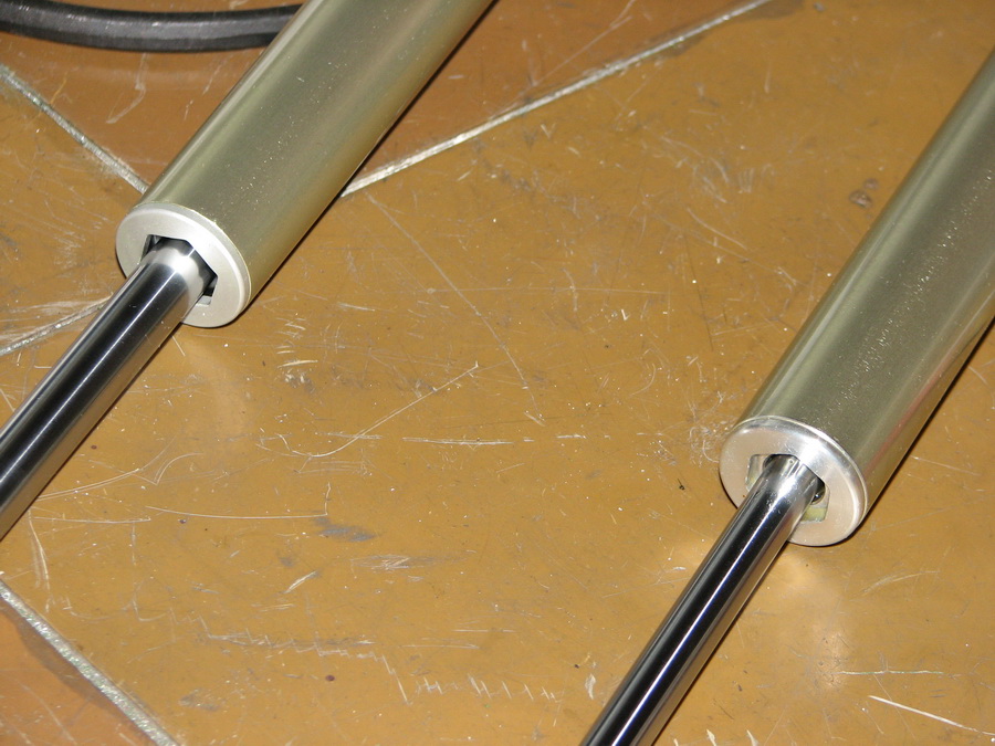 11. Не забываем, кстати, протереть внутреннюю поверхность черной трубы, и наносим на ее конце тоже немного смазки, чтобы при вставлении внутреннего штока, направляющие кольца распределили эту смазку по всей внутренней поверхности трубы.