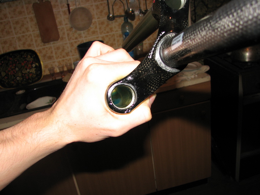14. Очищаем снаружи подседельник от лишней и выступившей смазки.