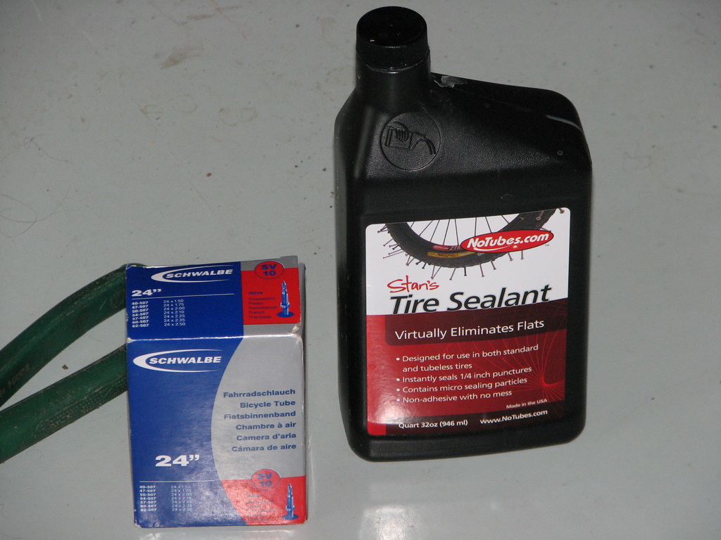 Но сезон плавно подошел к своему завершению, а в зиму я загоняться со всем этим не стал. Решил дождаться следующего теплого сезона, а в это время как раз и заказать недостающие для бескамерки компоненты. Для меня ими оказались камеры на 24 дюйма с ниппелем «преста» (их у нас в городе просто нет) и герметик (его тоже у меня не оказалось).