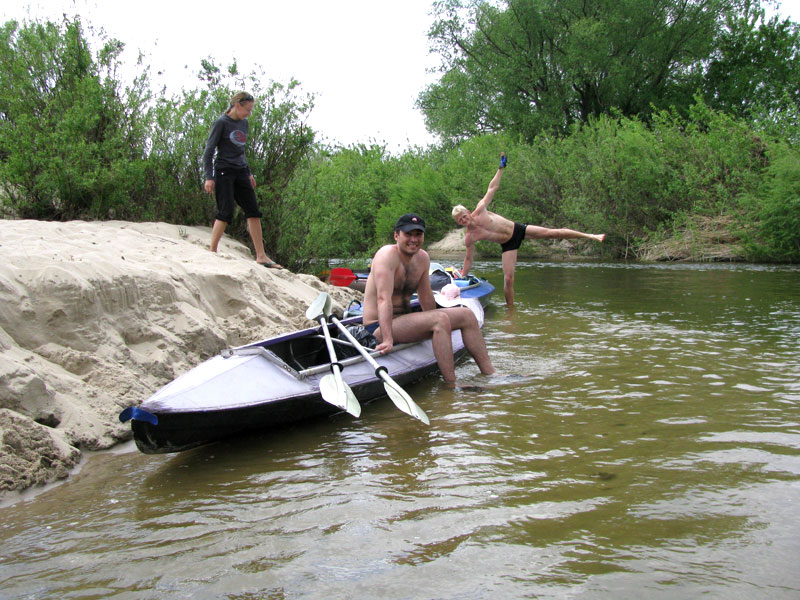на третий день Юля снова устроила праздник жизни, который мы вкусили и двинулись дальше. на третий день было понятно что байдарки - это скушноватое занятие (более 2х дней), даже пороги которые нас встречали с радостью скребя дно не сильно радовали, мы постоили катамаран и гребли спиной вперед, это немного разнообразило, можно было немного поговорить... но желание поехать вдоль этой реки на велике било в виски все сильнее. ближе к финишу движение все чаще проходило дном по дну... иногда я выпадал из байдарки - это поднимало тонус. машины и мотоциклы с местных деревень все реже искали мосты, а ехали по накатанной дороге через реку вброд :) перед погрузкой нас радостно полил дождик что предало влажности в рюкзаке. :)) огромное спасибо всем кто помог собирать и разбирать байдарку! спасибо всем кто участвовал в этой поездке таким огромным составом!