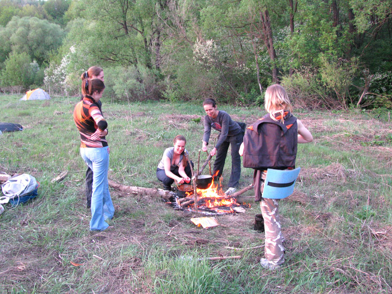 на второй стоянке была борба с дубовым пнем, который поочереди пилили все, но он не сдавался. эту ночь можно назвать музыкальной, практически всю мы ее провели за костром обмениваясь звуками. в этих красивых краях.