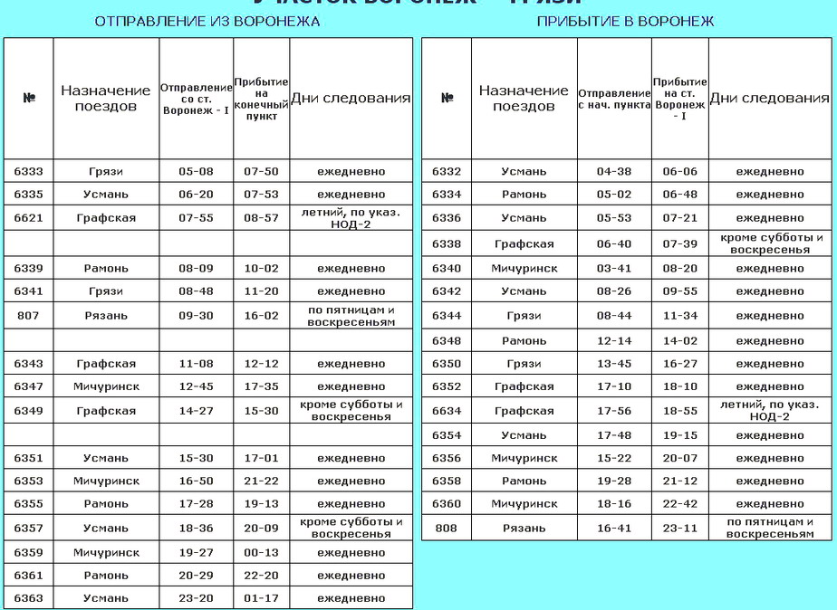 Dwoex писал(а):Время отъезда должно подсказать расписание электричек, коль скоро мы планируем встретиться с группой в Усмани. То есть от времени прибытия электрички в Усмань отнимаем время для преодоления этого расстояния своим ходом. Получаем время отъезда (из - под виадука, полагаю).