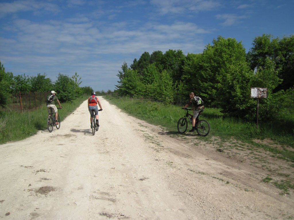напившись, наполнив баки и чуток поплутав ещё, через лесопосадку выбрались таки на кукую-то дорогу.