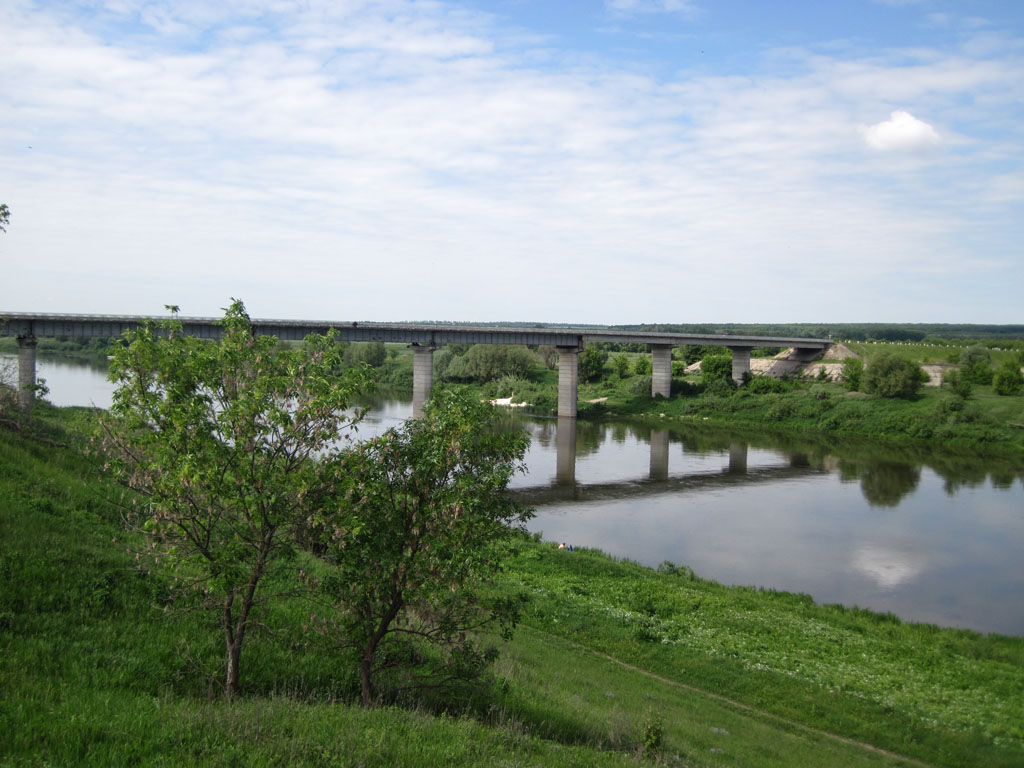 В районе села Русская Гвоздёвка был допущен стратегический фейл: мы свернули к Дону, туда, где возвышаются вышки ретрансляторов. Поблуждав по лугам, дачным посёлкам, лесам; преодолев пару оврагов, выбравшись к берегу Дона и попив водички из родника с табличкой, пафосно завереяющей что она вода там из лучших в области, трасса вновь была найдена, и вскоре Новоживотинский мост преодолён.