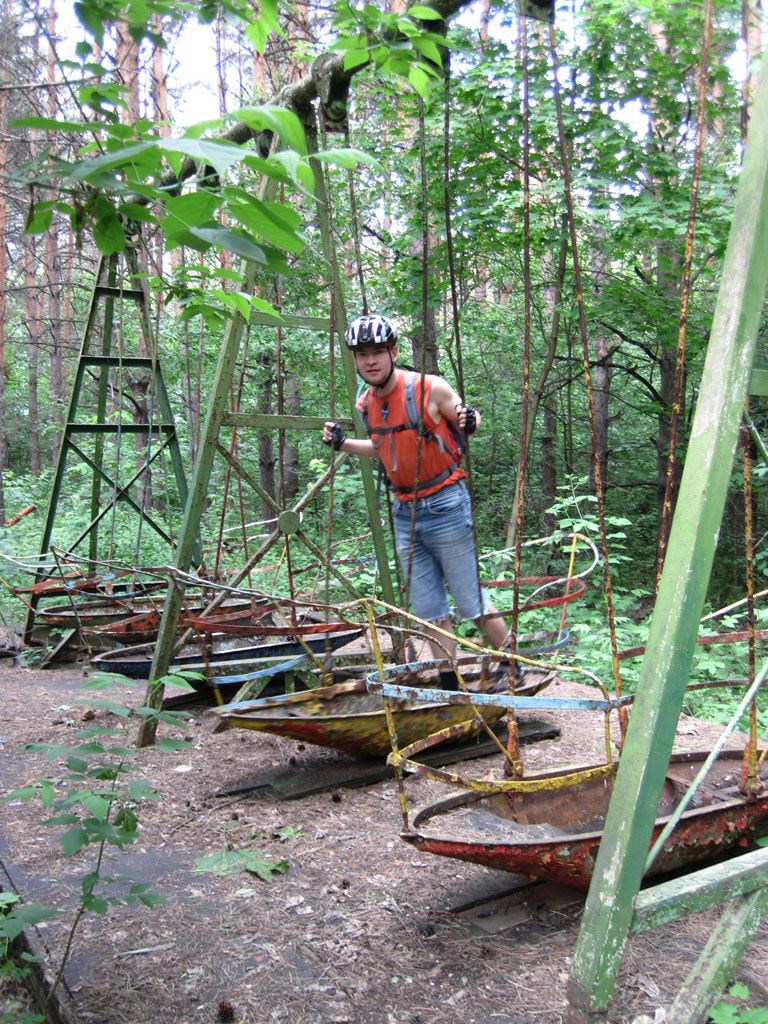 Вернувшись к обрывам и постояв около них, двинули на турбазу Дон. Надо сказать, что там всё цело, разве что зарасло и брошено за ненадобностью. отличная когда-то турбаза тупо неисполуется. Там даже кран в необитаемой зоне турбазы работает и уникальные качели с тормозами по-прежнему функционируют.