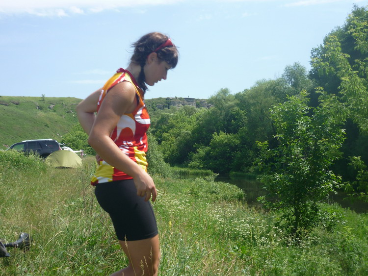 Проклятая жара, с тупым упрямством предсказанная синоптиками, была ключевым моментом 308-километрового заезда. Допекать начало уже часов в 9 утра, когда остановились пить традиционный чай в шалманах у Стародубовского. Ехали туда вчетвером. Rangifer, Radler, Zheny и я. Недж собирался, но не поехал. Галя и Жени остались на Ворголе ночевать. Галя собиралась приключенчески погоняться сегодня. Приедет – расскажет. Жени собирался вычерпать из Воргола голавликов с помощью нехитрой, но дорогой обманки под названием спиннинг. Туда, несмотря на почти попутный ветер, ехали не спеша. Помногу и с удовольствием пили все , что течет, но не горит. Платная дорога сейчас временно бесплатна из -за ремонта. На некоторых участках машины согнали на одну полосу, а по другой, где уже положили новый аствальд, можно свободно ехать на веле. К слову, из-за солидарности с Галей ехали на байках. В силу жары и небыстрого темпа лично я периодически погружался в сомнабулическое состояние, близкое к обмороку. Приходилось выливать на голову, как только подвертывалась возможность, воду. Самым паршивым участком ожидаемо оказались подступы к Ельцу, там где однополоска и где в прошлом году переехало Серегу 460. Фуры буквально спихивали с обочины. Впрочем, конец безобразию уже виден. Двухполоску дотянули до липецкого поворота и вправо уходит строящаяся двухполоска в обход Ельца. Когда ее сделают, от Воронежа до Москвы двухполоска будет везде. Липчан мы не встретили ни на липецком повороте, ни на повороте с М4 на Ключ Счастья, ни на самом Ворголе. Приехал на машине Еретик, чтобы с Галей участвовать в гонке. На самом Ворголе мы оказались после 12 дня и долго искали лагерь. Поехали под Вороний камень, ниже плотины. Пока Радлер с Жени лезли в гору на сам Камень, Галя полезла в Воргол купаться. Дно илистое, вода мутная. На Вороньем Камне висели какие-то скалолазы, но это были не приключенческие гонщики. Лагерь оказался выше плотины, за поворотом реки, поэтому его не было видно, хотя народу было тысяча, наверное. Месиво из палаток, машин и снаряжения. Галя с Жени остановились в сторонке, рядом с воронежскими спелеологами. Жени в компании девушек – спелеологов отправился на веле в деревню за водой, я чтобы не помереть от жары начал варить на его горелке кофе. Оно реально помогло. Дождались с Радлером хоть какого- то спада жары и в 17-00 двинули в Воронеж. Ветрище дул вовсю. До Ельца долетели на скорости за 40 – ветер был попутным. Дальше, вопреки моим опасениям, ветер не стал встречно – боковым. В худшем случае – просто боковым, поэтому довольно бодренько посменно попилили по М4. В программе оставалось два пункта: поедание борща в стародубовских шалманах и встреча в Задонске со знакомой Радлера. Которая приехала туда из Питера посмотреть на красоту. На Задонск свернули не доезжая до моста 10 км, это кажется 412 км трассы или около того. Нас ждало приятное открытие. Вместо 10 км подъемов – спусков по М4, после небольшого подъема, дорога равномерно шла на спуск к Задонску и километров 5 можно было вообще не крутить. Тягуы на левом берегу Дона, после моста по М4 тоже оказались в стороне – залезли в подъем в самом Задонске. Он покруче, но гораздо короче. По пути на Воронеж всем рекомендуем ехать этой старой дорогой, как это сделали мы. Встреча со знакомой была назначена у ворот монастыря в Задонске. На радостях дал дву