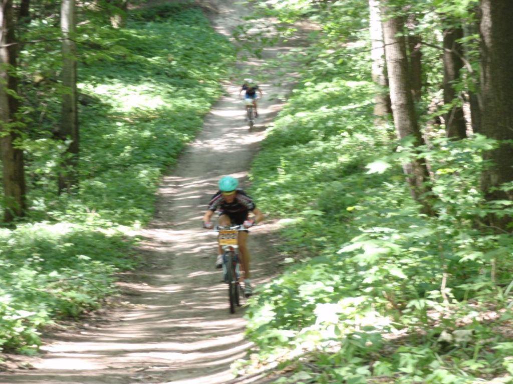 Трасса - местами повторяет трассу предыдущего этапа. Добавлен один подъем-спуск, и добавлена довольно сложная техничная петелька с двумя стремными съезжалками по рыхлому грунту. Если ее бежать - то бежать оч много придется, сесть на велосипед там негде. Желающие прикатать ее - обращайтесь, покажу. Резина там хороша будет что-то типа швальб рокет ронов, нобби ников, тот же кенда невегал наверн покатит, кароч зубастое и широкое. Длина круга - что-то около 5 км набегает.