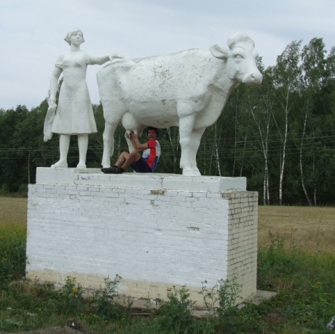 В Калужской области очень популярны памятники пастушкам с козами, дояркам с коровами. Проехать мимо изваяния доярки было выше сил Вована. Он долго пытался извлечь молоко из сосков коровы и добиться взаимности каменной женщины. Но тщетно.