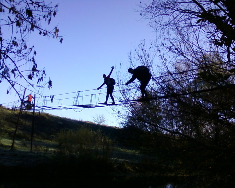 дома не сиделось, вот поехали пересчитывать мостики через Девецу. пьянка выдалась знатная, так еще и после длительного воздержания. понравилось все, особенно мостик номер 13. тросы очень чорошо расходились друг отдруга (по вертикале) по весом 4-х человек, а мне вот пришлось давить своими скромными 90кг, и расстояние меж ними было не более 60см. было интересно, страшновато. торкнуло хорошо. всем спасибо за компанию