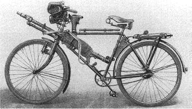 Походу так оно и было. " Стандартный пехотный велосипед вермахта, состоявший на вооружении самокатных команд, предназначенный для транспортировки пулемета MG-34. Германия. 1939 год" Хотя и на фото 1895 просматриваются похожие конструкции. http://www.ljpoisk.ru/archive/997582.html