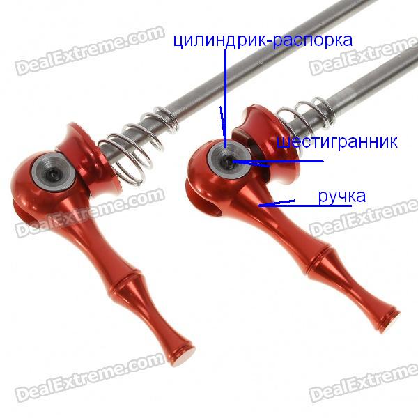 Все началось с того момента, когда я решил вкорячить эксцентрики на байк и обнаружил, что резьбовая часть оси переднего эксцентрика (в установленном положении) довольно сильно выступает за пределы красной шайбочки (сторона противоположная ручке эксцентрика). Недолго думая, принял решение и снял на камне лишнюю длину оси эксцентрика. Радостный пошел повторно ставить его на байк и вновь обнаружил, что теперь ручка свободно вращается относительно оси эксцентрика. Вращая ось против часовой стрелки, я полностью выкрутил ось из серебристого цилиндрика-распорки и все понял.