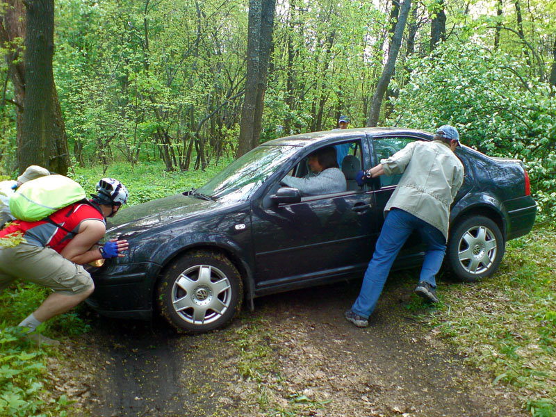 Велосипедисты вызволяют из грязевого плена VW Bora 1.6