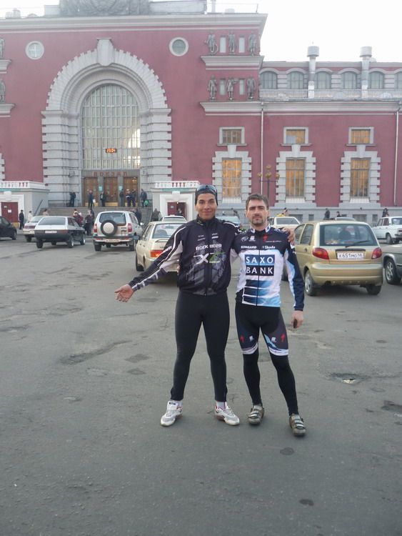 В Курске, по ГПС, причудливым грунтово-аствальдным маршрутом добрались до "Буратино', где нас встретил Хаджи. Вскоре подтянулся экипаж Неджа с Галей, Саном и Укуркиным. Набросились на снедь и на всякие заграничные велофенечки короб которых притащили Еретик и Жени.