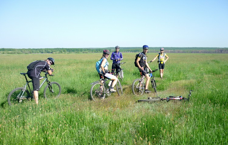 На этот раз терпилы собрались у Линии на Остужева, чтобы предпринять бросок на Битюг, а заодно посмотреть на Шип-Курган на обратном пути. Вот кто это был: Rangifer, FreeMan, Radler, San, Zheny и я. Пятисотый не приехал. Маршрут на Битюг повторял поездку двух и трехлетней давности. Через Новую Усмань выехали в луга у Рыкани,