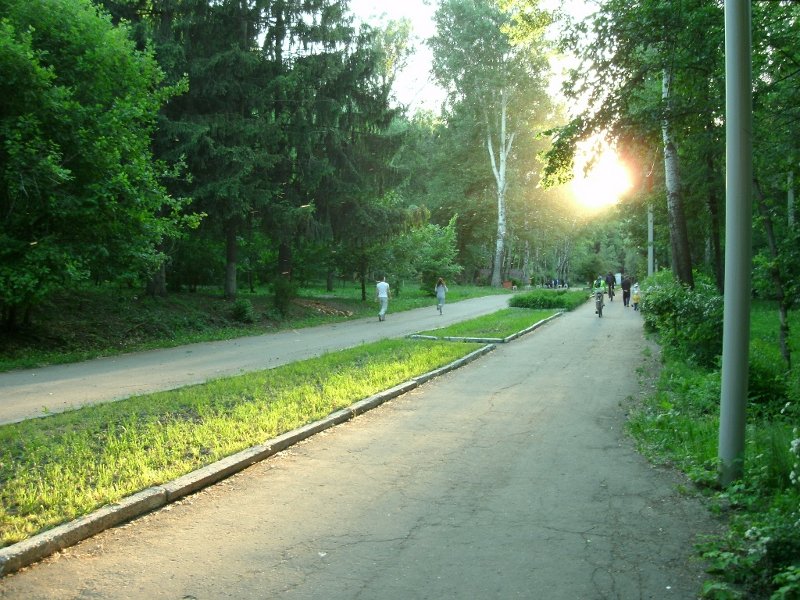 Далее направились в парк Динамо, где и колесили по горкам. Нашли там пещерку живописную из спелетеного кустарника. Трещеточка моя в очередной раз начала давать позывы сильного износа - скоро менять ходовую. Также был погнут слегка задний обод на скоростном спуске с кочками. Перед спуском с горки, Кулибин со значительным лицом подкрутил едва не слетевшие по дороге гайки заднего колеса. Получив 8-ку мне на заднее колесо, мы поехали в город. С Кулибиным расстались где-то на шишкова, Михин прокатился со мной почти до самого дома (на гормолзавод), после чего укатил на окружную, весело помахивая надписями "Пц!!".