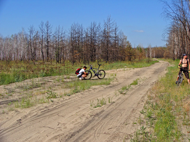 Собрались у остановки Военный горродок. Собирались там неспешно, потягиваясь и зевая. После чего покатили потихонечку на мост в отрожке. Прибыв на место, обнаружили изрядное скопление воронежских подмостовно-двухколёсных аствальдогрунтожорных кентавров (в простонародье велосипедисты) всех мастей и расцветок, которые усиленно смущали ремонтирующих опоры моста джамшутов. Тут пошла рознь и мы разделились на 2 лагеря. Кто-то хотел ехать непременно на зори, кто-то в дубовку. Наконец вроде всё утихло, все разобрались, кто куда едет. Постояв ещё немного там и подождав особо любящих поспать по субботам, мы покрутили к воде. Перед тем, как свернуть в сторону венька, мы осчастливили тётеньку с квасом, скупив у неё половину запасов сего продукта. Думаю, теперь тётенька рванёт на канары и на выручку откроет там сеть пятизвёздочных отелей... Ну или построит небольшой заводи по производству кваса где-нибудь в Сухой Березовке... Потом опять ехали-ехали и, наконец, приехали! Поиграли в волейбол (существенные коррективы в траекторию полёта мяча вносил ветер, в определенный момент возникло даже предложение перемещаться всей группой в его направлении подскоками дабы исключить его влияние), искупались, обсудили вечные темы типа "Алкоголь. Лекарство или яд?", а также "Методы установки велосипедов повышенной парусности на постой относительно направления ветра.", открыли целых 2 вида новых летучих животных - "Собака человекожорная мухокрылая" и "Чёрный европейский клювокрылый жираф", после чего покинули группой насиженное место чуть раньше (кто-то ещё оставался) и укатили в город где-то в 14:30. Потихоньку группа рассасывалась по городу, пока мы не остались с Ringil вдвоем. Проводив её до места учёбы, я покатил сдавать своего коня в мастерскую менять ходувую, ибо всю дорогу я пугал участников экспедиции жуткими звуками прокручивающихся педалей и слетащей цепи.