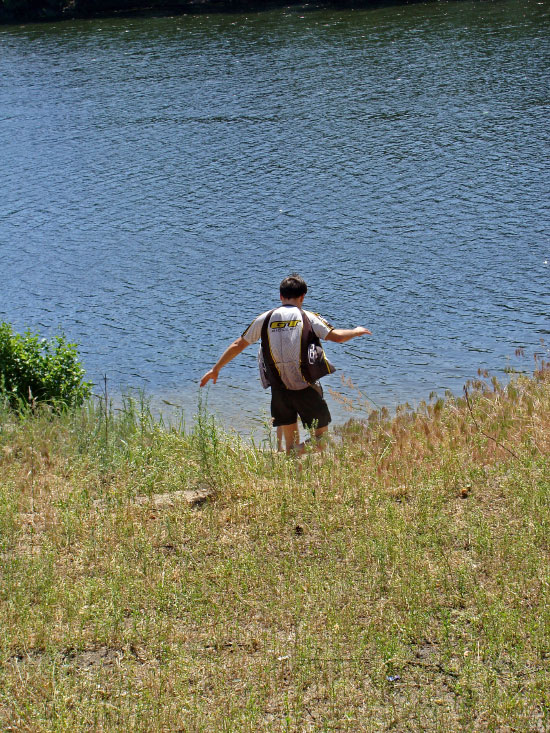Быть опоздуном - печально... Мало того, что приходится догонять всех не поев и против ветра, так ещё и переехать норовят велосипедом :( Ну хоть познакомились - и то хорошо)))) А вообще моё желание успеть до трёх сгонять на речку выглядел примерно следующим образом: проснулся, опоздал, бегом догнал последних, искупался, поел, выехали первой партией обратно... Крайне суматошная суббота, но хоть искупался) Программа минимум выполнена! Ах да, ещё где-то между поел и выехал обратно увернулся от наезда =))