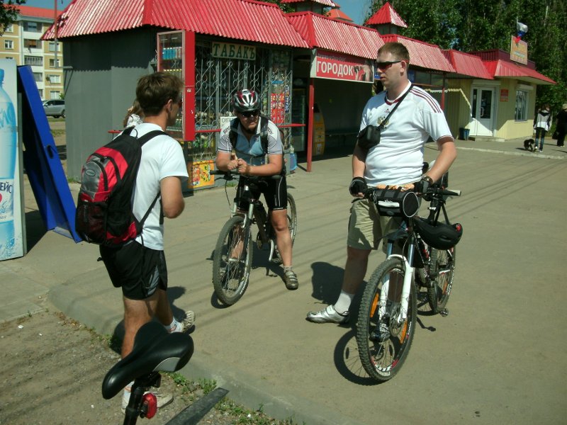 Собрались у остановки Военный горродок. Собирались там неспешно, потягиваясь и зевая. После чего покатили потихонечку на мост в отрожке. Прибыв на место, обнаружили изрядное скопление воронежских подмостовно-двухколёсных аствальдогрунтожорных кентавров (в простонародье велосипедисты) всех мастей и расцветок, которые усиленно смущали ремонтирующих опоры моста джамшутов. Тут пошла рознь и мы разделились на 2 лагеря. Кто-то хотел ехать непременно на зори, кто-то в дубовку. Наконец вроде всё утихло, все разобрались, кто куда едет. Постояв ещё немного там и подождав особо любящих поспать по субботам, мы покрутили к воде. Перед тем, как свернуть в сторону венька, мы осчастливили тётеньку с квасом, скупив у неё половину запасов сего продукта. Думаю, теперь тётенька рванёт на канары и на выручку откроет там сеть пятизвёздочных отелей... Ну или построит небольшой заводи по производству кваса где-нибудь в Сухой Березовке... Потом опять ехали-ехали и, наконец, приехали! Поиграли в волейбол (существенные коррективы в траекторию полёта мяча вносил ветер, в определенный момент возникло даже предложение перемещаться всей группой в его направлении подскоками дабы исключить его влияние), искупались, обсудили вечные темы типа "Алкоголь. Лекарство или яд?", а также "Методы установки велосипедов повышенной парусности на постой относительно направления ветра.", открыли целых 2 вида новых летучих животных - "Собака человекожорная мухокрылая" и "Чёрный европейский клювокрылый жираф", после чего покинули группой насиженное место чуть раньше (кто-то ещё оставался) и укатили в город где-то в 14:30. Потихоньку группа рассасывалась по городу, пока мы не остались с Ringil вдвоем. Проводив её до места учёбы, я покатил сдавать своего коня в мастерскую менять ходувую, ибо всю дорогу я пугал участников экспедиции жуткими звуками прокручивающихся педалей и слетащей цепи.