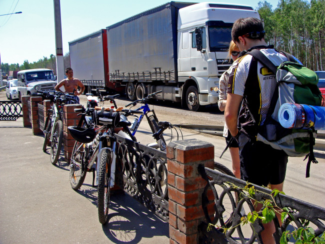 Собрались у остановки Военный горродок. Собирались там неспешно, потягиваясь и зевая. После чего покатили потихонечку на мост в отрожке. Прибыв на место, обнаружили изрядное скопление воронежских подмостовно-двухколёсных аствальдогрунтожорных кентавров (в простонародье велосипедисты) всех мастей и расцветок, которые усиленно смущали ремонтирующих опоры моста джамшутов. Тут пошла рознь и мы разделились на 2 лагеря. Кто-то хотел ехать непременно на зори, кто-то в дубовку. Наконец вроде всё утихло, все разобрались, кто куда едет. Постояв ещё немного там и подождав особо любящих поспать по субботам, мы покрутили к воде. Перед тем, как свернуть в сторону венька, мы осчастливили тётеньку с квасом, скупив у неё половину запасов сего продукта. Думаю, теперь тётенька рванёт на канары и на выручку откроет там сеть пятизвёздочных отелей... Ну или построит небольшой заводи по производству кваса где-нибудь в Сухой Березовке... Потом опять ехали-ехали и, наконец, приехали! Поиграли в волейбол (существенные коррективы в траекторию полёта мяча вносил ветер, в определенный момент возникло даже предложение перемещаться всей группой в его направлении подскоками дабы исключить его влияние), искупались, обсудили вечные темы типа "Алкоголь. Лекарство или яд?", а также "Методы установки велосипедов повышенной парусности на постой относительно направления ветра.", открыли целых 2 вида новых летучих животных - "Собака человекожорная мухокрылая" и "Чёрный европейский клювокрылый жираф", после чего покинули группой насиженное место чуть раньше (кто-то ещё оставался) и укатили в город где-то в 14:30. Потихоньку группа рассасывалась по городу, пока мы не остались с Ringil вдвоем. Проводив её до места учёбы, я покатил сдавать своего коня в мастерскую менять ходувую, ибо всю дорогу я пугал участников экспедиции жуткими звуками прокручивающихся педалей и слетащей цепи.