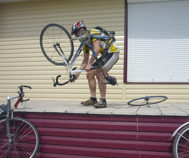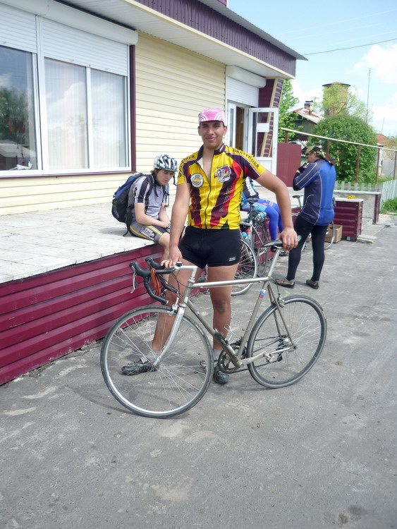есть на полпути маринской двухсотки, до школы картинга оставалось 125 км. После Льгова предстояло сделать крюк на север и выехать только в Курчатове. Солнце уже светило во всю. Начали раздеваться. Недж быстро принял позу отдыхающего Фавна. К активной деятельности его пришлось возвращать методами военных лекарей из "Бравого солдата Швейка". После лечения он стал как новенький. Пользуясь паузой, Радлер быстренько прокололся и в ярости хотел разбить непослушный спортивный снаряд о цоколь магазина. К счастью его удалось быстро успокоить, ведь без велосипеда трудно быть основной тягловой силой пелетона. Во Льгове повернули на Конышевку, а потом на Ольшанку. Помимо ветра, участок запомнился каким то удивительно шерховатым аствальдом. В