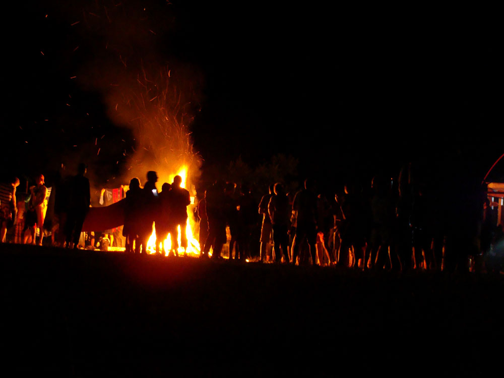 Ночь шторма: все танцуют в мокрых спальниках вокруг костра )))