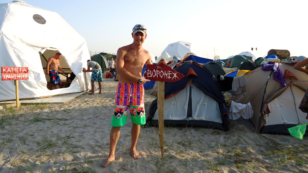 Идеальный вариант, которому мне не давали следовать – это просыпаться через час после начала завтрака, в это время в душе уже никого нет, после чего приходить на завтрак, где также уже свободно )) (хотя уже в 8 утра в палатке такое пекло что не хватает веника) кстати когда Женек проверил температуру - там было 57 градусов, а на припасенном газовом баллоне нашлась надпись "не нагревать свыше 45 градусов", но это не страшно, рядом с нами (у камеры хранения) валялся чей-то 5 литровый баллон )