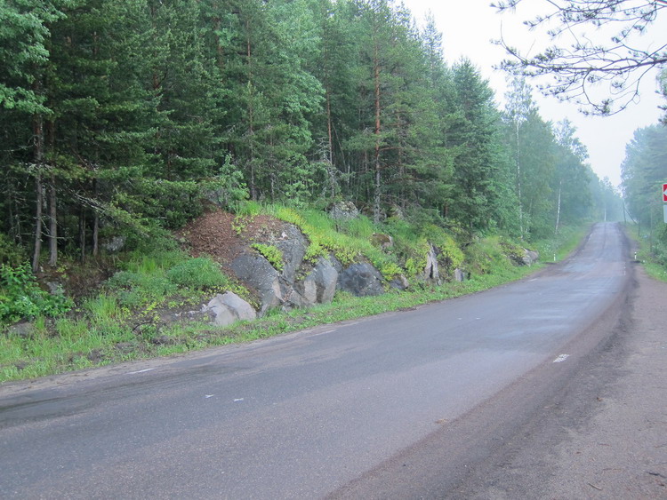 ВованББ даже водки выпил. Впрочем оказалось, что не красота его пробрала. На стокилометровом расколбасе он забил себе руки настолько, что с трудом держался за баран. Вернувшись в Медвежьегорск двинулись на юг по федеральной трассе с хорошим аствальдтом, прорезающей гранитные скалы. Начался рельефчег. Скалы сплошь были расписаны любителями прекрасного - "Киса и Ося здесь были (c)".