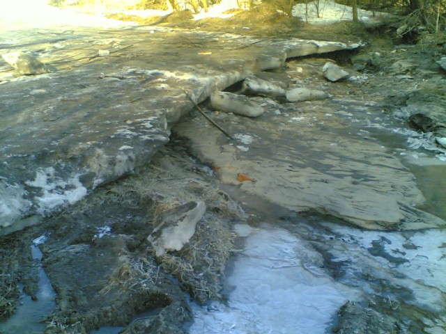 Далее начинается Ипподромная. Здесь пошел лед, и внизу его много. Весной это хорошо видно:
