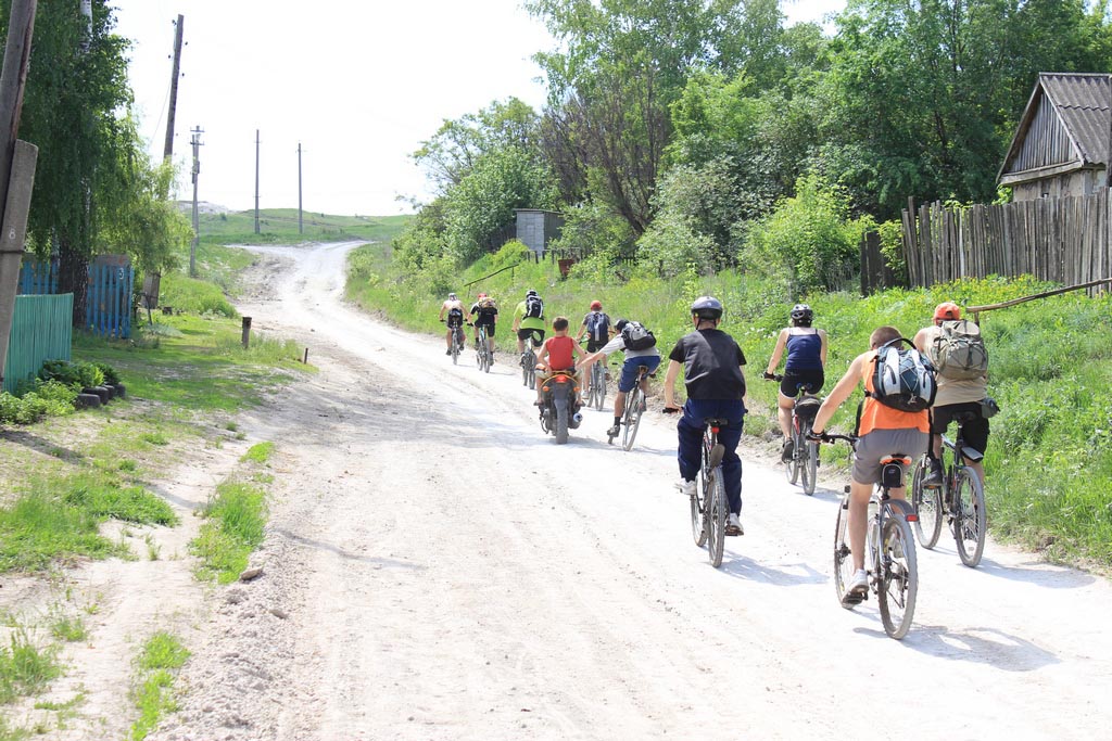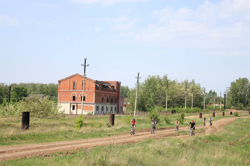 Собрались в 7 утра 17 велосипедистов на алюминиевых великах у воронежского Мига-21(угадайте сами из чего он) и уже хотели сделать из памятника то, что делает ОлегАндрейч со своим велопорнозвездолетом, но вспомнили что старт в Сторожевое в 7-10. Выдвинулись организовано. Водители гробиков на колесах в такую рань еще спят. Так что мы беспрепятственно домчали до Машмета. По пути подобрали молодого самца, готового к прыжку и причитающего о своем Zаде. Дальше ехали вдоль жд, соблюдая заявленную скорость, направление и ориентацию, только Данила изредка протестовал. Так не спеша добрались до колодца-журавля времен Костенкинских мамонтов. Решили модернизировать его, избавившись от ведра, прицепленного к карабину. Но такая модернизация была нерациональна по двум причинам: