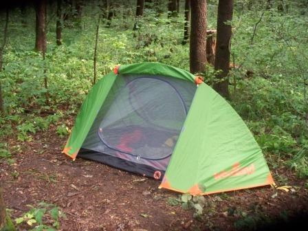 ) и спокойно сплю в ней дальше, внутренняя палатка (а главное дно) не пострадала. Кстати материал дна на первый взгляд кажется очень тонким и непрочным, но пока что отлично выдерживал все острые веточки, корешки и прочую лабуду на которую приходилось ставить палатку. Современные (недешёвые) материалы таки рулят.