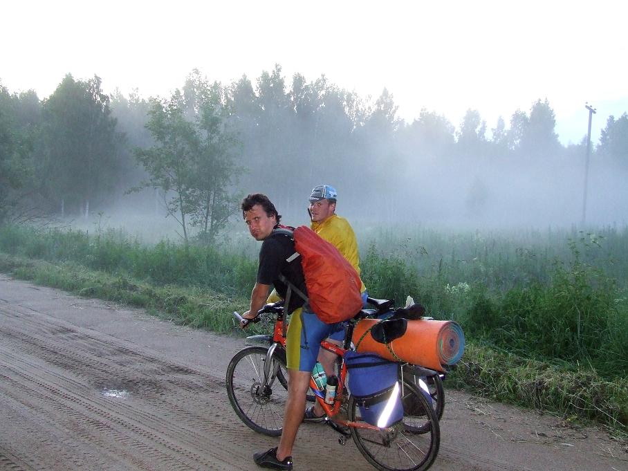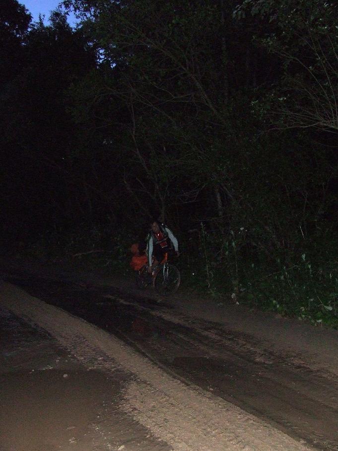 дороги были разные:грунт,щебень,асфальт,песок.километаж:9го 140,10го 140,11го 230,12го 250,13го 203,14го 307,15го 320.средняя скорость за всю поездку 23,5км/ч,отдельно по дням не засекал.набор высот засекать было нечем,но подъемы были в основном во второй половине поездки:в Смоленской и Орловской обл.Общие впечатления изложит попозже Олег.
