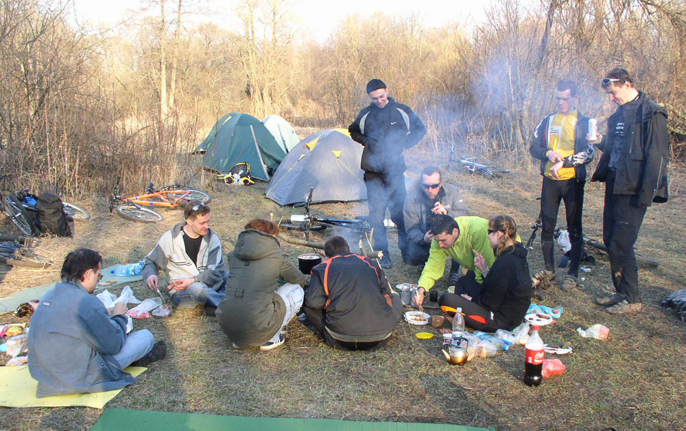 Побудка была ранняя, спасибо Ванишу, который залез на дерево и орал на всю округу "Ку-ка-ре-ку!" Были попытки его догнать и прибить, но хитрец ретировался в соседний лагерь)))) Ну а дальше как-то незаметно чай, сосиски, да и поехал я домой. Уже в пути мой сонный мозг осознал, что я забыл рюкзак, Ваниш сказал что его кто-нибудь заберет, отпишитесь мне потом пожалуйста