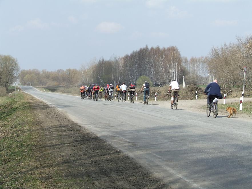 Оказалось, что нас, десять человек, собралось под мостом в Отрожке, и давай крутить педали. Некоторые были в особо сомнабулическом состоянии после ночной покатушки. Еще из - под моста позвонил я нашему единомышленнику Андрею, чтобы встречал нас в Бору.