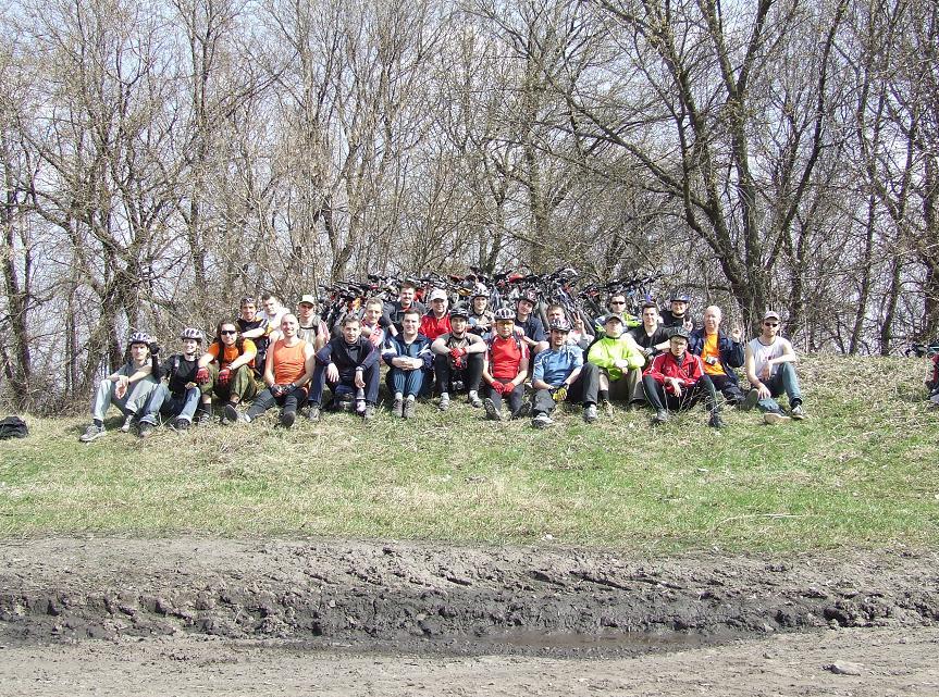 Так и доехали до Бора, где нас на обочине дороги поджидал Андрей. Как должен выглядеть абориген сдешних мест, которому ведомы все тропы в заповеднике? Он должен быть маленьким мужичком - лесовичком, на трофейном немецком велосипеде, замотанным изолентой. Андрей оказался громилой ростом с меня и раза в два тяжелее. Вместо трофейного велосипеда оказался ГТ Заскар Про на Ребе и с Кранками Кэнди. Отак вот. Мы выбрались на платформу станции Бор, перелезли через пути и двинули по заповеднику, оказавшемуся смешанным лесом, перерезаемым надвое речкой Ивница. На мосте и сфотографировались. После моста и до выезда из леса в Пчельниках начался песок, которого у нас большой любитель Ivana. Он даже не ставит на байк покрышки потолще, очевидно чтобы глубже этот песок прочувствовать. Когда покоряли пески первый раз позвонил Sergey P, его группа уже доехала до Усмани на электричке.А мы были еще очень далеко от Усмани, километрах в 25-ти.По ходу выяснилось, что наш провожатый Андрей уже встречался в прошлом году с Radlerом и другими форумчанами во время их похода вокруг заповедника. А я тогда ногу лечил. Выехали к заброшенной деревне Пчельники. Тут уж лето разыгралось вовсю и пришлось раздеваться. По песчаным дорогам через Пчельники и еще один мостик через Студенку доехали до Беляево, где начинался асфальт на Усмань. Андрей с нами расстался. Договорились связаться на обратном пути, чтобы проехать назад через заповедник, если не полезем через затопленый Ступинский мост. Асфальтовый кусок на Усмань по окраине заповедника показался мне нудноватым и затянутым. Интересным показался только аэродром малой авиации у самой Усмани. Доехав до Усмани, отправились закупаться в магазин, еще больще усугубив наше опоздание. Но, спасибо первой группе за терпение, они ждали нас на остановке в четырех километрах от Усмани по Липецкой дороге. Сергей П уже успел смотаться на Татарский вал, и все двинули туда. Наверно, когда всю жизнь живешь рядом с красотой, к ней привыкаешь. Было видно, что местные жители привыкли к Татарскому валу, а еще больше к Татарскому Рву под Валом. Ров был наполнен органическими и неорганическими продуктами жизнедеятельности местного населения. Было видно , что с историей население на "ты". А мы, не уняв трепета, от гласа веков, доносящегося из - под залежей пластиковых бутылок, приступили к фотосессии. По количеству народа получилась выездная форумка. Вот это да! Любоваться Валом пришлось недолго, из за опоздания нашей группы. Проехали по асфальту до деревни Никольское и свернули в поля с целью попасть в Поддубровку. По полям, как обычно шли галсами, вдоль посадок. Один раз встретились остатки вешних вод в овражке. Выехали на асфальт Усмань - Савицкое и по нему добрались до Поддубровки, где в районе родника и моста через Лесную Излегощу устроили привал. Тут то меня и подстерег 460, умело убравшийся перед моим носом. Ресет занял минут десять. На руке вздулась шишка, но кость сломать не удалось. Пришлось от горя заняться поеданием продуктов. Дальше те, кого пугала перспектива штурма песков двинули на Савицкое, а мы по асфальту на Демшино, где этот асфальт кончился и начались пески для затосковавшего по ним Ivana. Кроме того обнаружили, что потеряли Андрюху. Начали вспоминать был он с нами или нет. Самое паршивое, что на какой то из развилок он мог свернуть не туда. Д