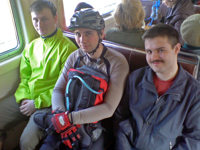 Погрузились в электричку, поехали. Примахалась билетерша - платите за велики, это не ручная кладь. В итоге кое-кому удалось доказать что это ручная кладь, кто то заплатил за один билет с трех великов, кто то полную стоимость.
