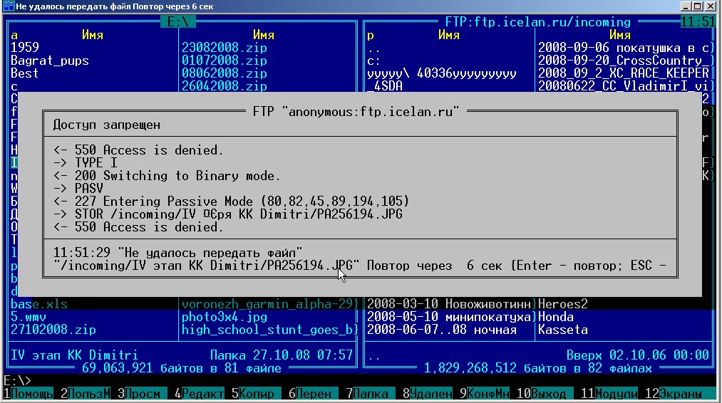 Хотел фотки выложить... Зашел Фаром в инкаминг на ФТП, нажал F5 чтобы скопировать папку в корень инкаминга, пишет что нет прав.
