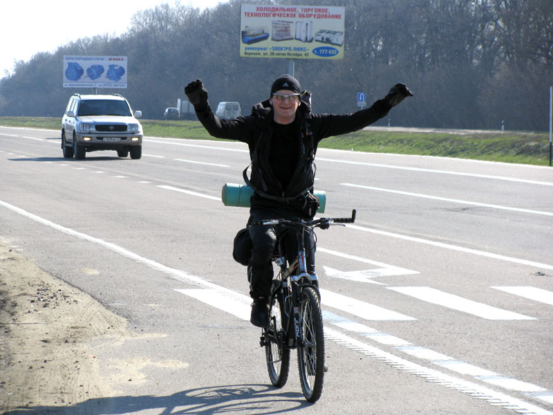 По пути к Ямному нас обогнал пожилой человек на шоссере, с рюкзаком старого пошива на спине. Респект ему