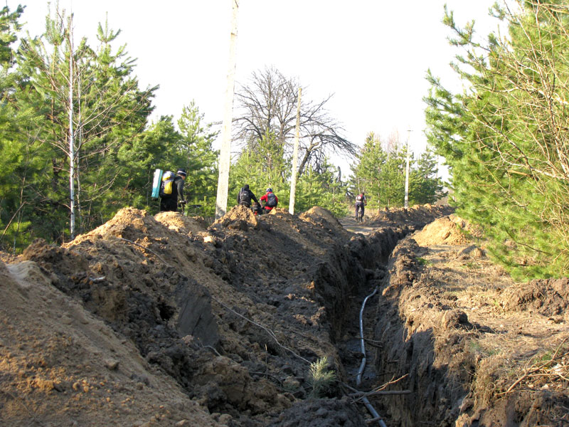 Проехали вдоль траншеи в Животине (фото ВоВка) видели следы лисапедистов. После кладбища попробовали лед на озерце (фото jedeye, наверное будут). Дальше в пойме по мостику из льда через ручеек отправили Александра, как самого тяжелого, проверить переезд (видимо там где убрался Zheny). Все прошло удачно. Потом влево на IдаRovo, где встретили ОЧЕНЬ Грязные 4х4 авто. В Rамони у Магнита затарились и подкрепились. Когда пролетели поворот на Лесную сказку, я с надеждой на положительный ответ в сторону АнМостов, спросил у Александра домой или нет. Сказал, что доедем до места, а оттуда на электричке. Хотя предполагал, что на последнюю один фиг не успеем. Далее в BOR, где Googlemap-Бабка подсказала направление и точное расстояние в 7км (магическая цифра, преследовавшая нас весь остаток вечера). Направление хоть и было прямым, но с песками не везде проезжабельными, перелопаченными гусеничной техникой для прокладки газопровода. Далее снег-лужи-грязь и при свете фонарей мы въехали в Краснолесный aka ГраFFское. Поплутав там, нашли верный путь (на элку есссесно не успели, гы-гы). От Графского до АнМостов 7км, согласно форуму.